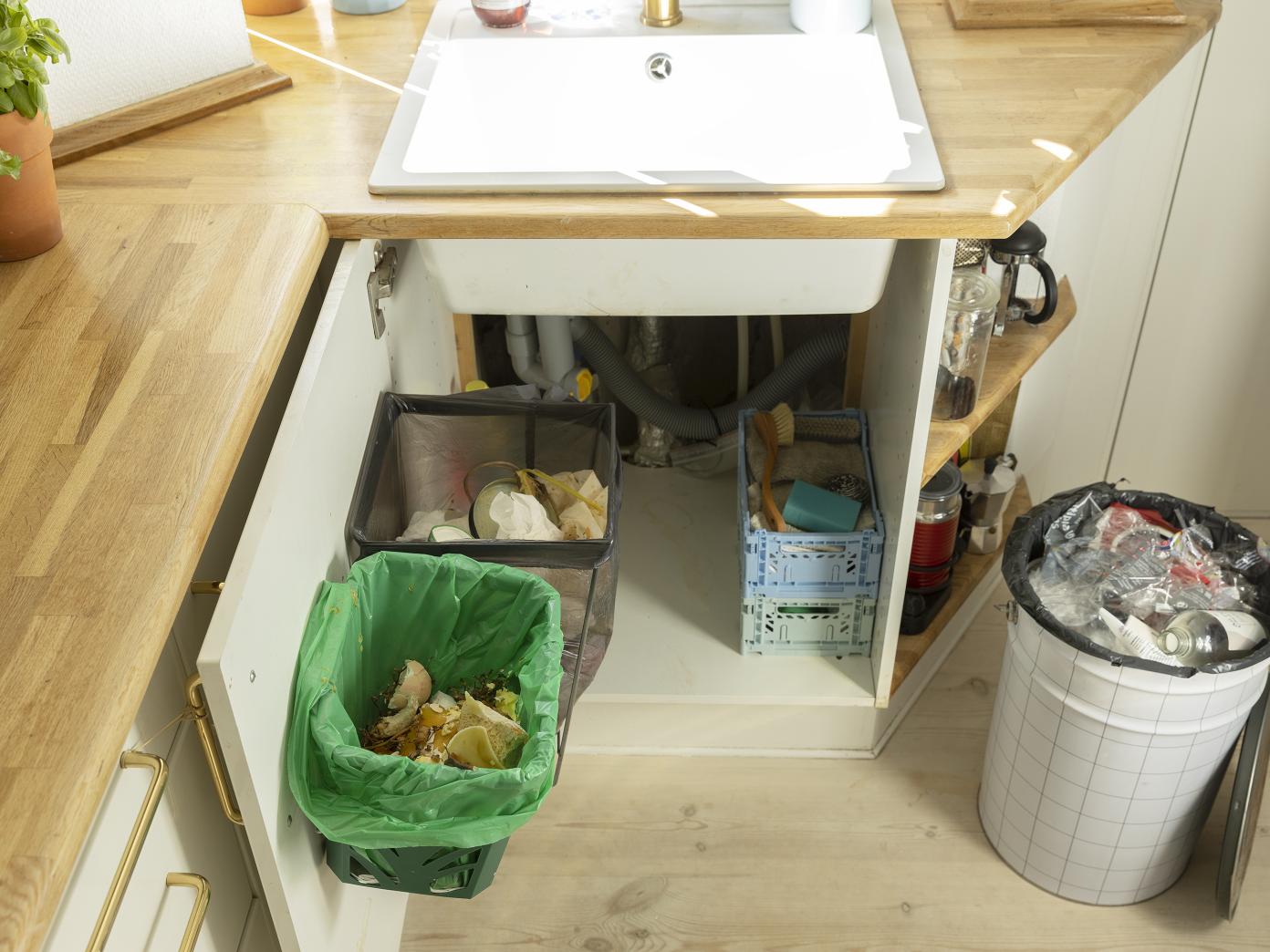 Det kan være lidt svært at få plads til affaldssortering i køkkenet. Så jeg tænkte, at vi kunne inspirere hinanden, hvis nogle af jer har smarte løsninger, I vil dele?